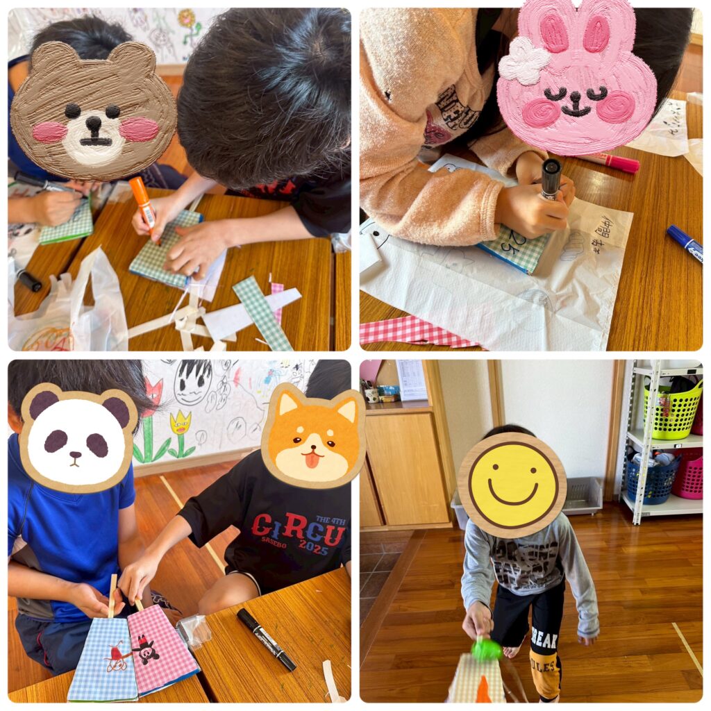 書き初めや制作活動の羽子板や凧作りをして広場で青空の下、凧揚げで走ったり楽しみました🤩